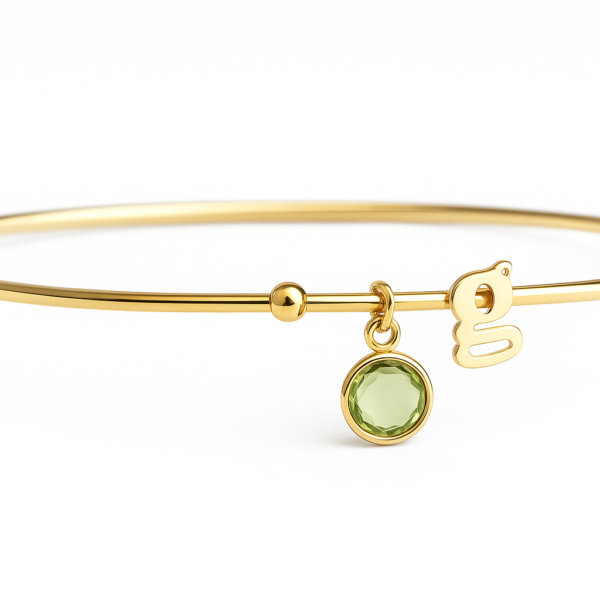 Brazalete Rígido Personalizado con Inicial y Piedra de Nacimiento