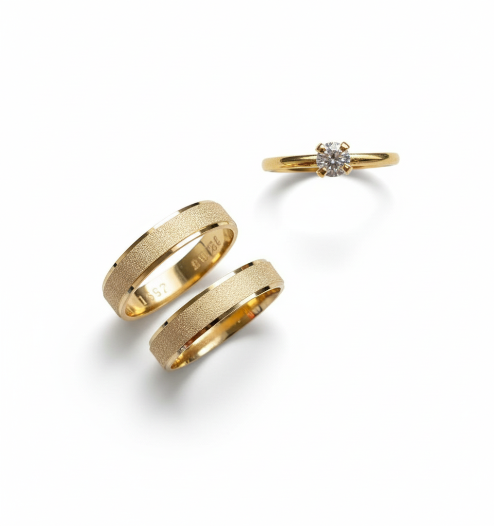 Significado: Simboliza lealtad, fortuna y estabilidad el oro amarillo. La textura de las bandas representa la durabilidad y la solidez de la relación.