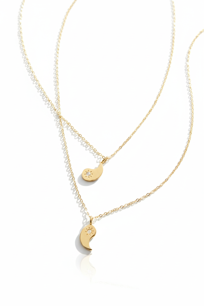 • Significado: Simboliza la armonía y el equilibrio entre fuerzas opuestas. El sol y la luna representan la luz y la oscuridad, el día y la noche, y juntos, simbolizan la interdependencia y la complementariedad en una relación, haciendo de este set un regalo ideal para parejas o amigos.