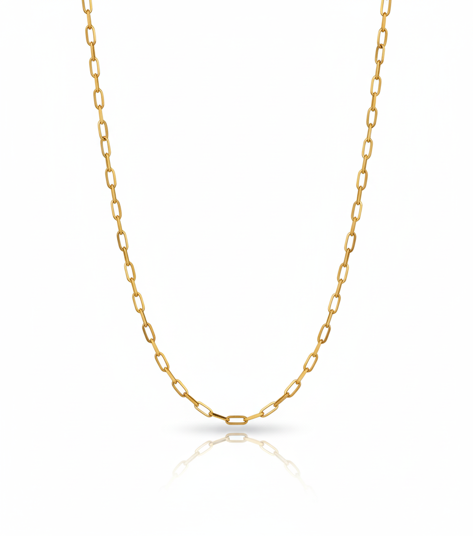 • Diseño: Está compuesta por eslabones ovalados individuales de grosor fino que se entrelazan de forma clásica y uniforme. Su estructura abierta permite que la cadena tenga una caída ligera y natural sobre el cuello.