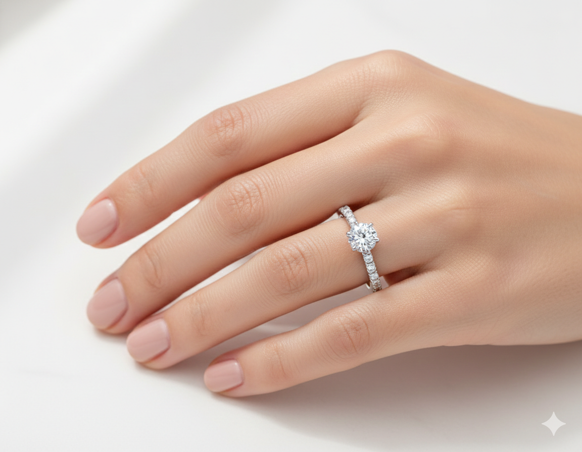 Significado: Representa la fuerza y el camino compartido. La piedra central simboliza el compromiso principal, mientras que los diamantes laterales representan los momentos de felicidad que pavimentan la vida en común.