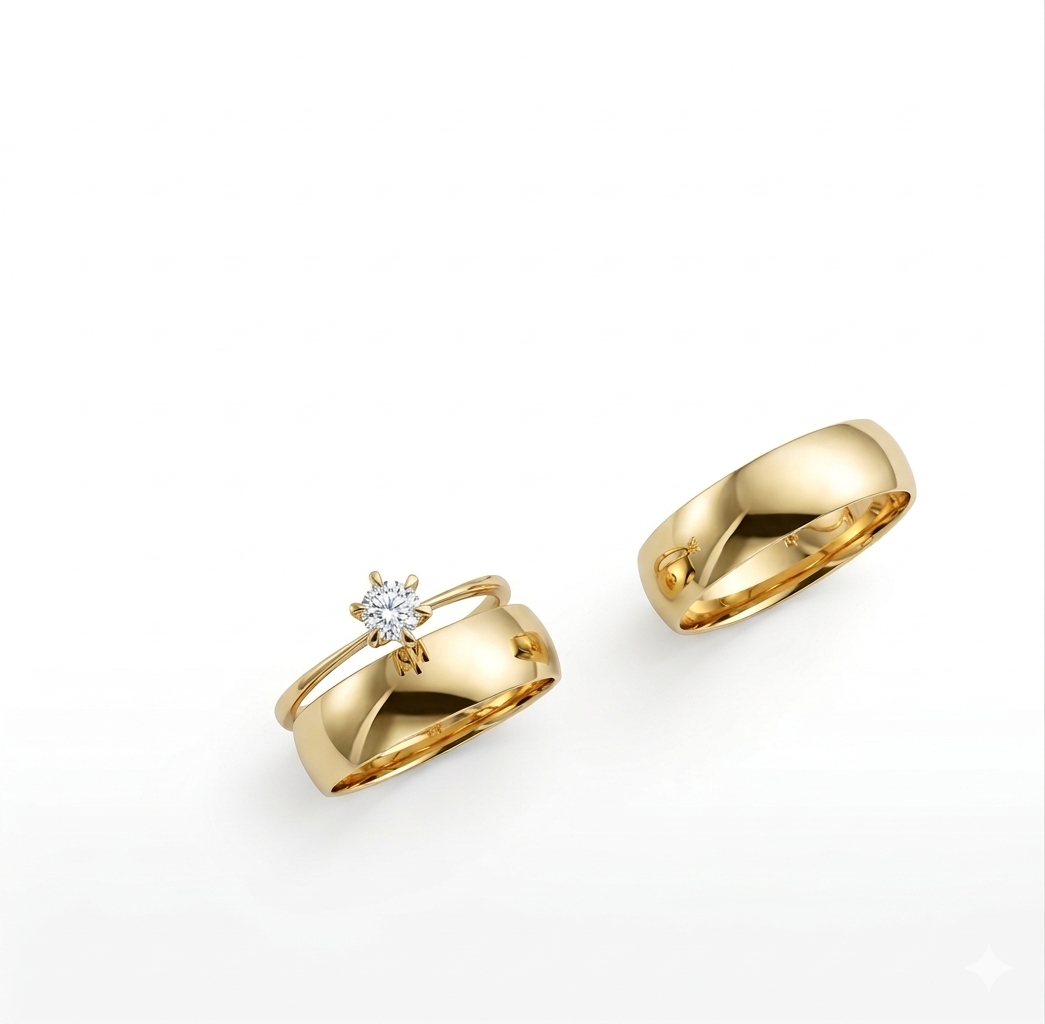 Significado: El grosor de las bandas simboliza un amor inquebrantable y protector. Al ser piezas tan presentes y brillantes, representan una unión que no se oculta, un compromiso que es el orgullo de la pareja y una promesa de estabilidad a través del tiempo.