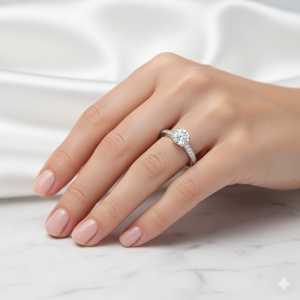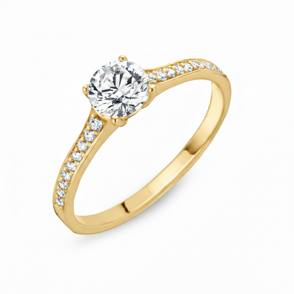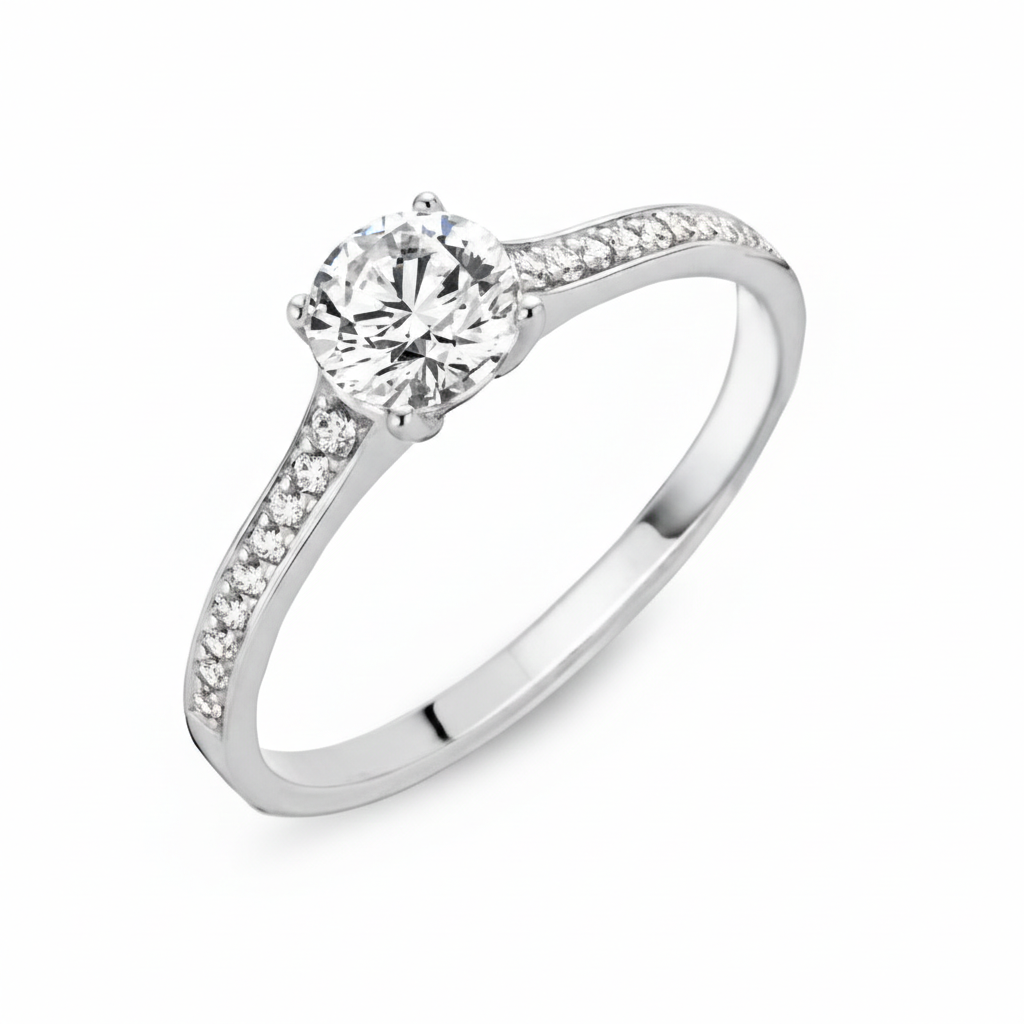 • Diseño: Anillo solitario con brazo estilizado y pavé de diamantes en ambos lados.