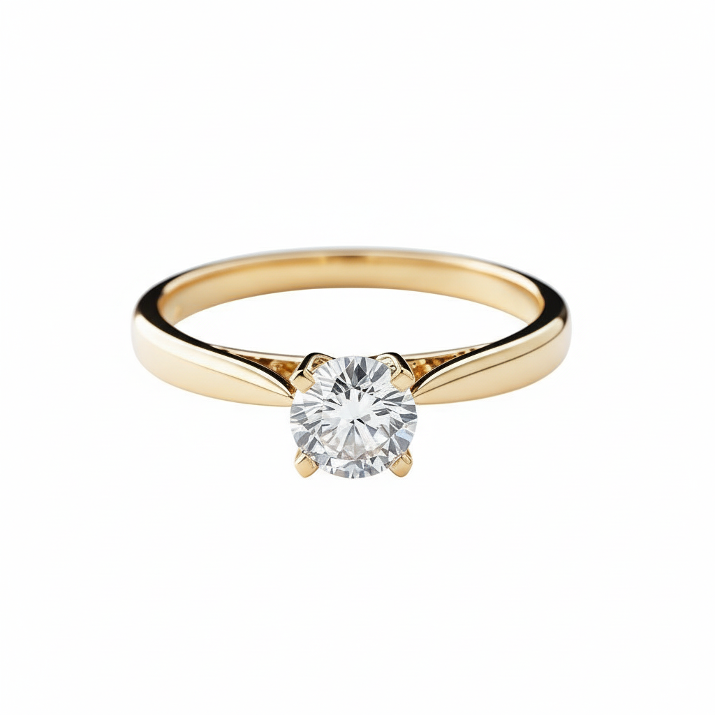 Diseño: Un clásico solitario con un montaje de cuatro garras que sujeta la piedra central de forma prominente. El aro es liso y ligeramente ahusado hacia la gema.