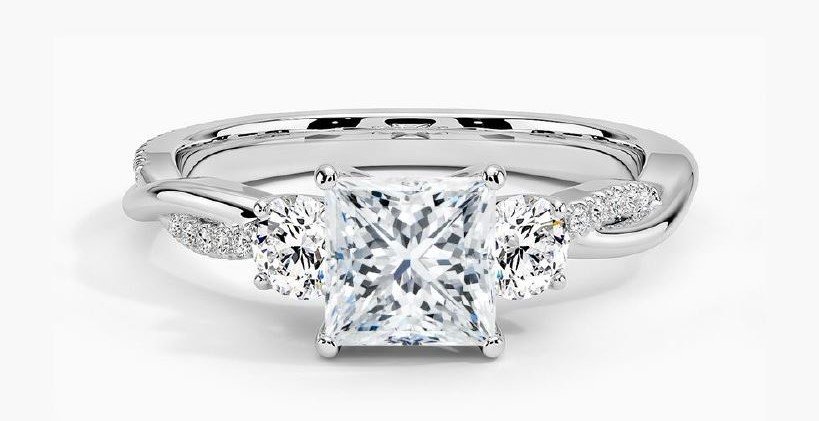 -Estilo: Clásico, sofisticado y atemporal. Es un diseño que combina la majestuosidad de un anillo de tres piedras con la delicadeza y el brillo adicional de una banda decorada. Evoca un lujo sutil y elegante.